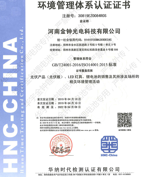 河南金鐘光電科技有限公司是專業鋰電電池制造商。主要生產動力型和儲能型鋰離子電池、房車鋰電池、工程機械鋰電池、戶外移動電源,可以為客戶提供從電芯、電池組在內的完整系列產品。
